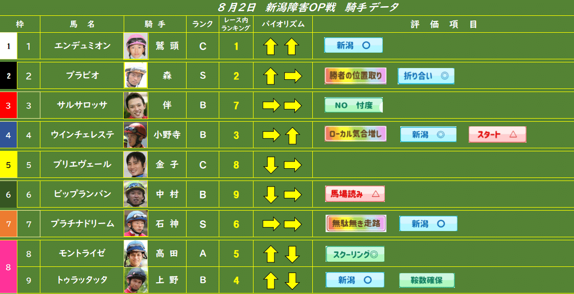 8月16日(土)新潟9R<新潟ジャンプS>予想