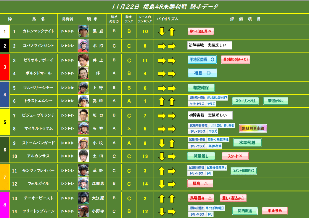 11月16日(土)福島4R<障害未勝利>予想